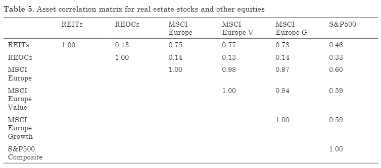 Pro evropské prostředí je situace složitější. Ano, existují tu také burzovně kótované REIT společnosti, ale legislativa pro ně platí jen krátce. Tyto společnosti mají specifické požadavky na výplatní poměry zisku, daňové úlevy a další odlišnosti od běžných realitních společností (REOCs). Pěknou studii na téma korelací těchto společností s evropským a americkým akciovým trhem publikovala v roce 2012 dr. J. Niskanen, z níž plyne následující: