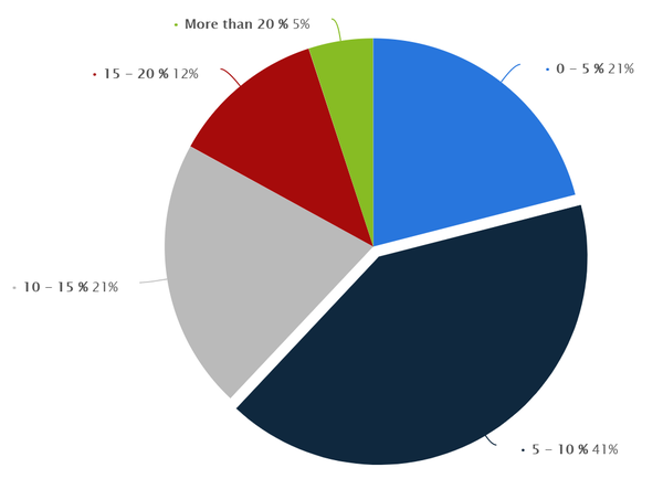 Lokalita je alfa a omega. Vezmeme to zeširoka, nejprve průměr za celou EU. Velmi hrubě o obecných výnosech reportuje statistika očekávané návratnosti od institucionálních investorů níže. Vidíme, že nejčastěji se cílí vlastní výnos okolo 5 až 10%, ale rozptyl je velký.