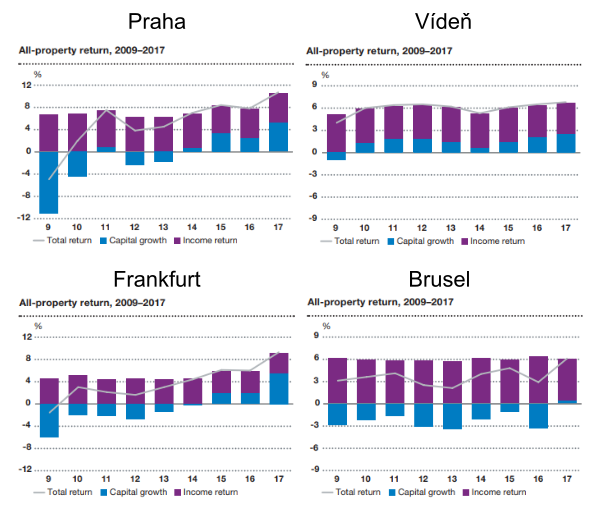 Neprůměroval jsem to, ale prostým pohledem lze tušit, že zatímco v Praze se realizoval výnos okolo 7% p.a., v okolních hlavních městech to bylo méně než 6%, někde i výrazně. Projděte si citovanou studii, rozptyly jsou značné. Zpráva pro nás je ale jasná. Jakkoli se nám může historická návratnost investic v Praze zdát super (vždyť o tom všichni mluví, jak to roste), pravděpodobně budoucí výnosy nebudou tak skvostné.