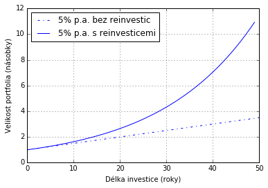 Bližší prozkoumání také ukazuje, že v tomto časovém horizontu deseti let není složený úrok z reinvestice tak dramatický a naše celkové zhodnocení bude přibližně 60%. Jde tedy z velké části stále o spoření a odkládání peněz, než o efekt investiční valící se sněhové koule. Pokud bychom nechali peníze zhodnocovat tímto tempem dlouhých 40 let, složený úrok by naše peníze zmnohonásobil. No, ale to už nám bude 70 a dost možná už na prahu smrti a je otázka, k čemu nám v takovém věku vlastně budou. 🙂