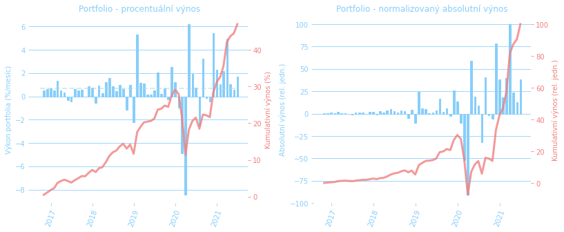 Pokud bychom chtěli ještě zůstat u čísel a udělat trochu generálku při příležitosti konce první poloviny roku, tak nejrelevantnější je asi vnitřní míra výnosu (IRR), která za celou dobu našeho investování dělá 11,0% ročně – více info jako vždy v přehledu PF. Tady jsme víc než spokojeni. A to vše s roční volatilitou za poslední 4 roky na úrovni 8,1%. To je +/- rizikovost, kterou si představujeme u PF, které se má dlouhodobě podílet na tvorbě cashflow pro naši “rentu”.