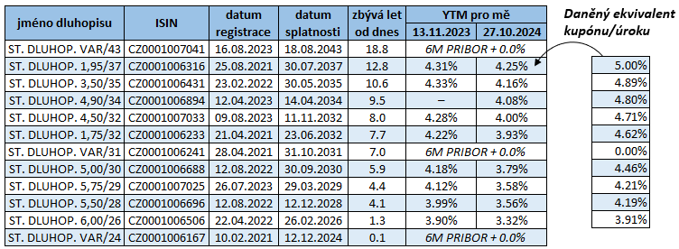 - Připravujeme se na druhou větší dávku nákupu státních dluhopisů s cíleným výnosem 4.2+% p.a. STOP