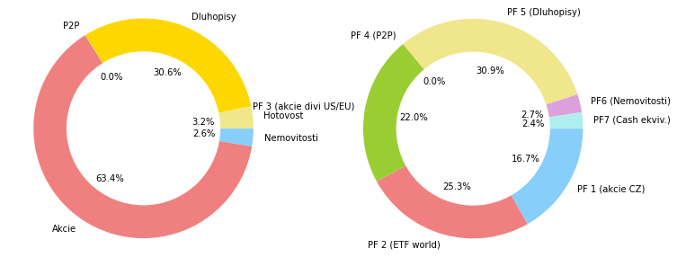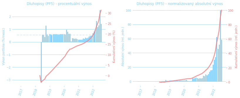 Grafy docela dobře ukazují, že propady trhů za poslední měsíce se týkaly víc technologií a growth akcií. Pokles na PF2 (světová ETF) je už docela markantní. Bližší info o dlouhodobém složení našeho mixu najdete na stránce portfolio.